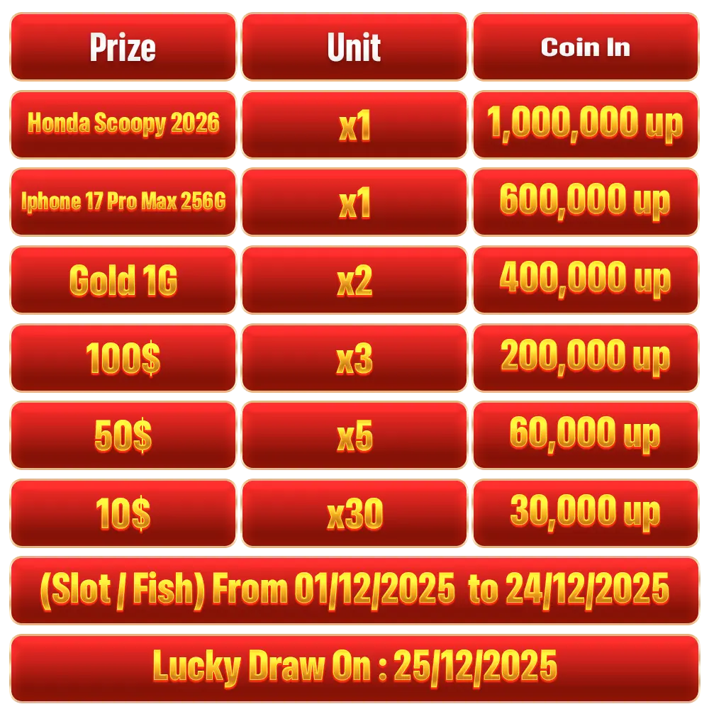 5. If there are two or more winner at the same score, we will take who is winning the first day winner.